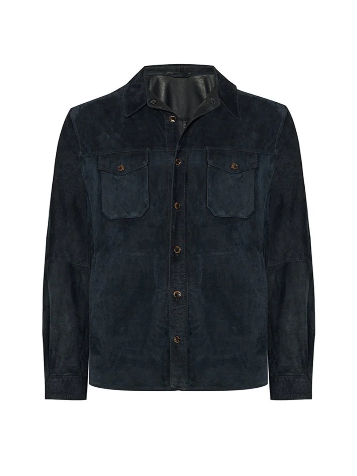 Bigardini Adrien Men's Suede Leather Overshirt - Navy Blue