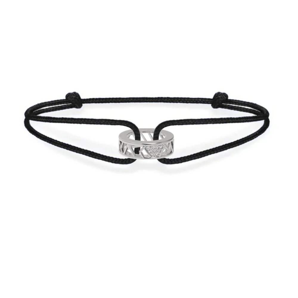 Stephanie Kalck Amour Black Cord Bracelet in White Gold