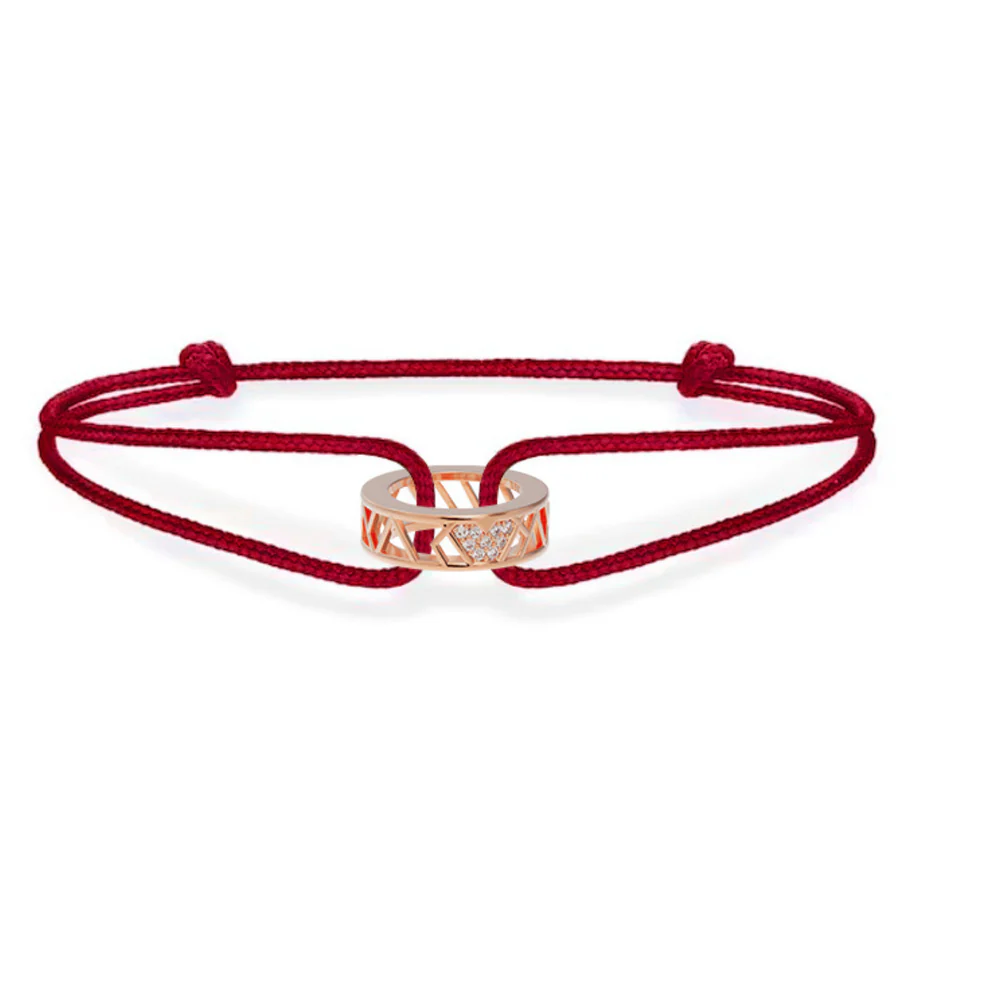 Stephanie Kalck Amour Red Cord Bracelet in Rose Gold