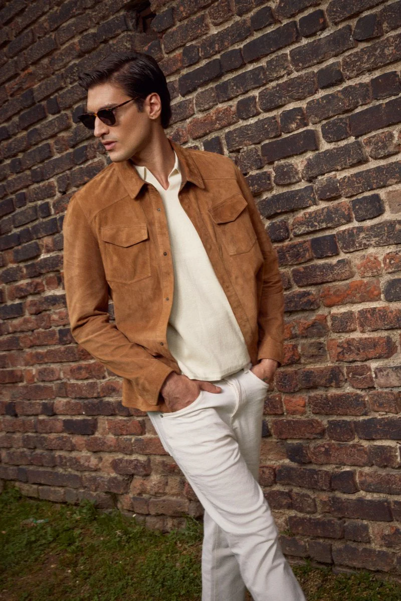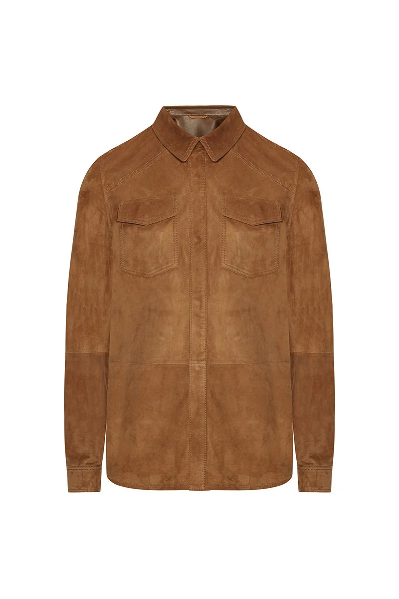 Bigardini Renzo Men's Suede Leather Overshirt - Snuff