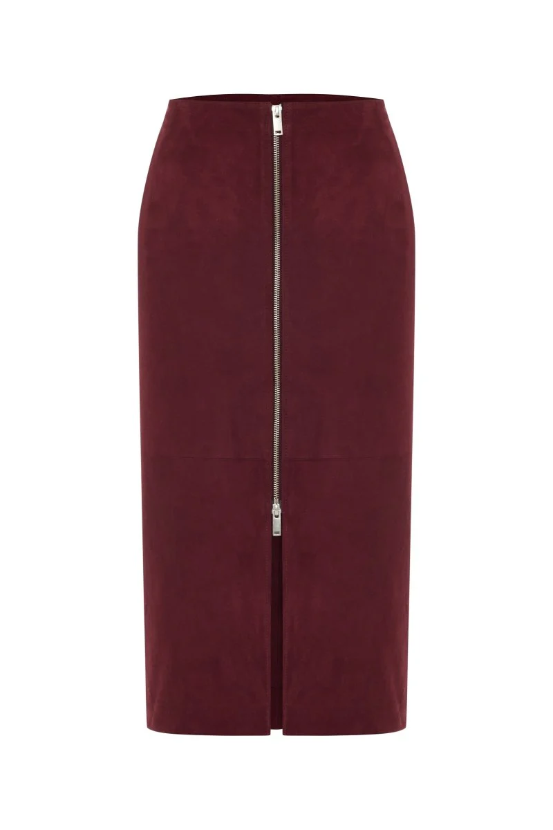 Bigardini Elena Women’s Leather Midi Skirt - Burgundy