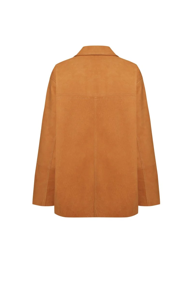 Bigardini Silvia Women's Oversize Suede Leather Shirt - Snuff