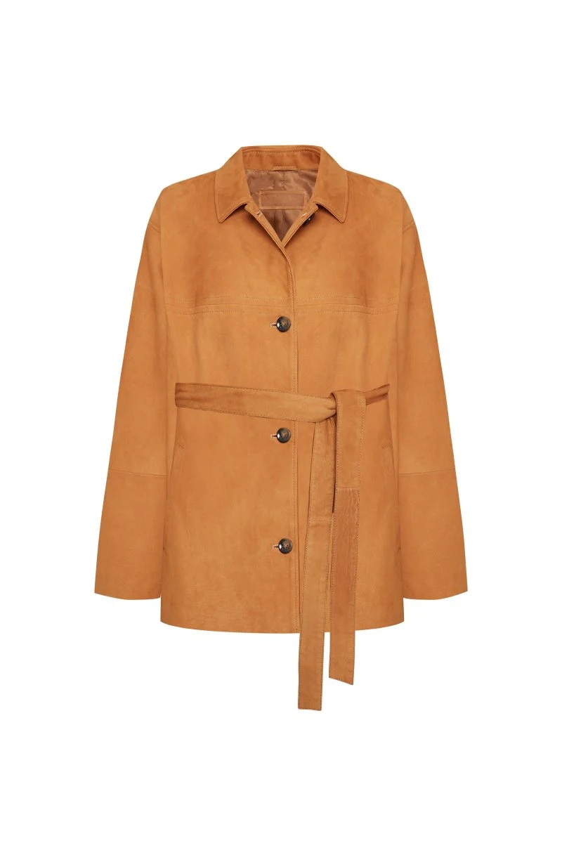 Bigardini Gia Women's Belted Suede Oversize Shirt - Khaki