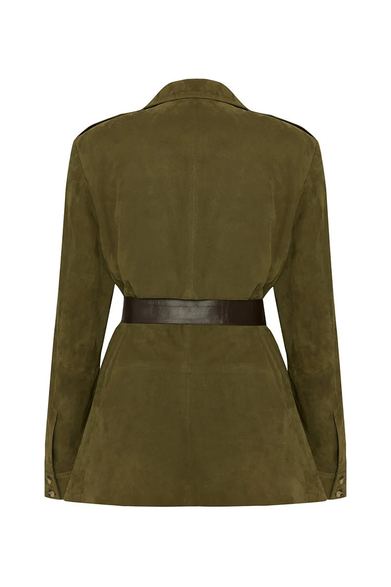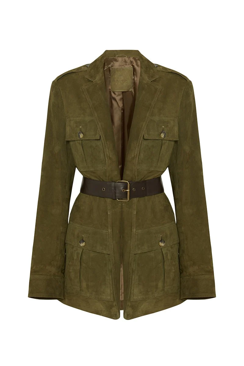 Bigardini Carla Women's Suede Safari Blazer Jacket - Khaki