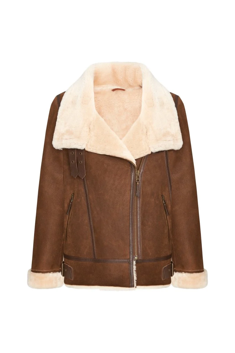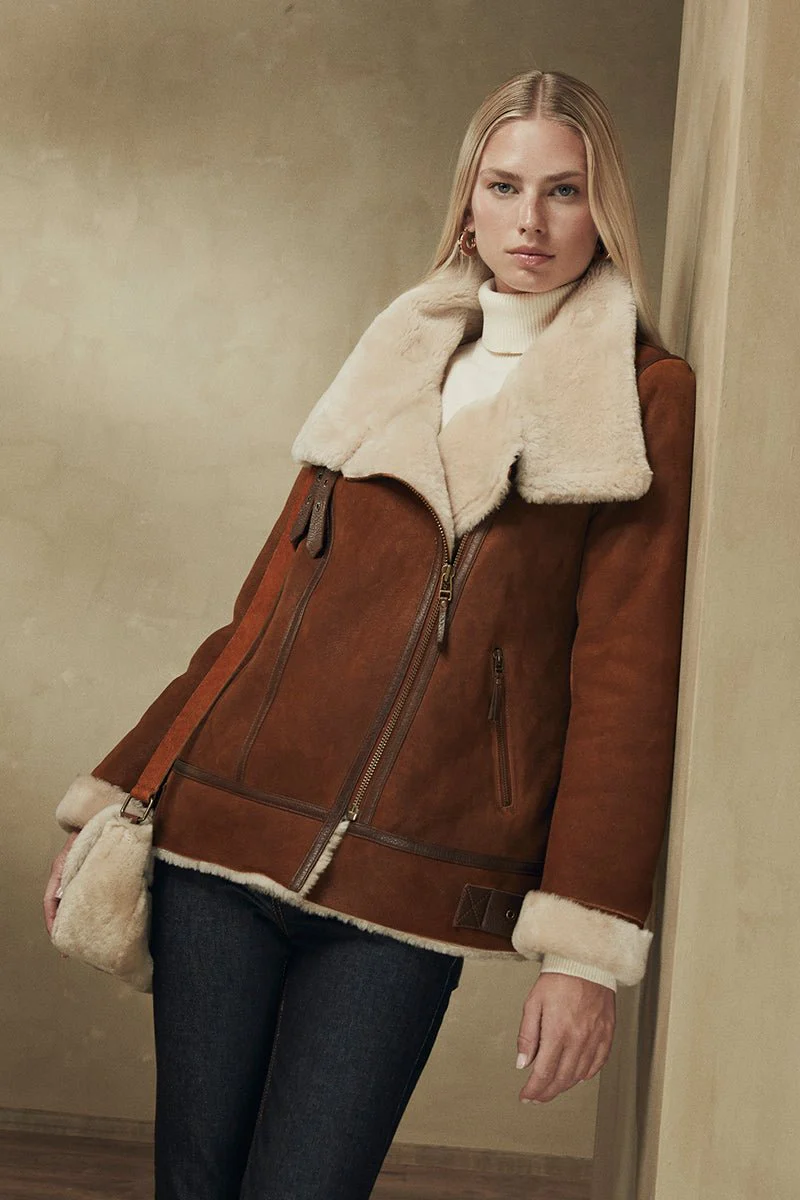 Bigardini Evelyn Women's Oversize Shearling Sheepskin Jacket - Whiskey