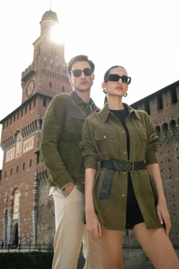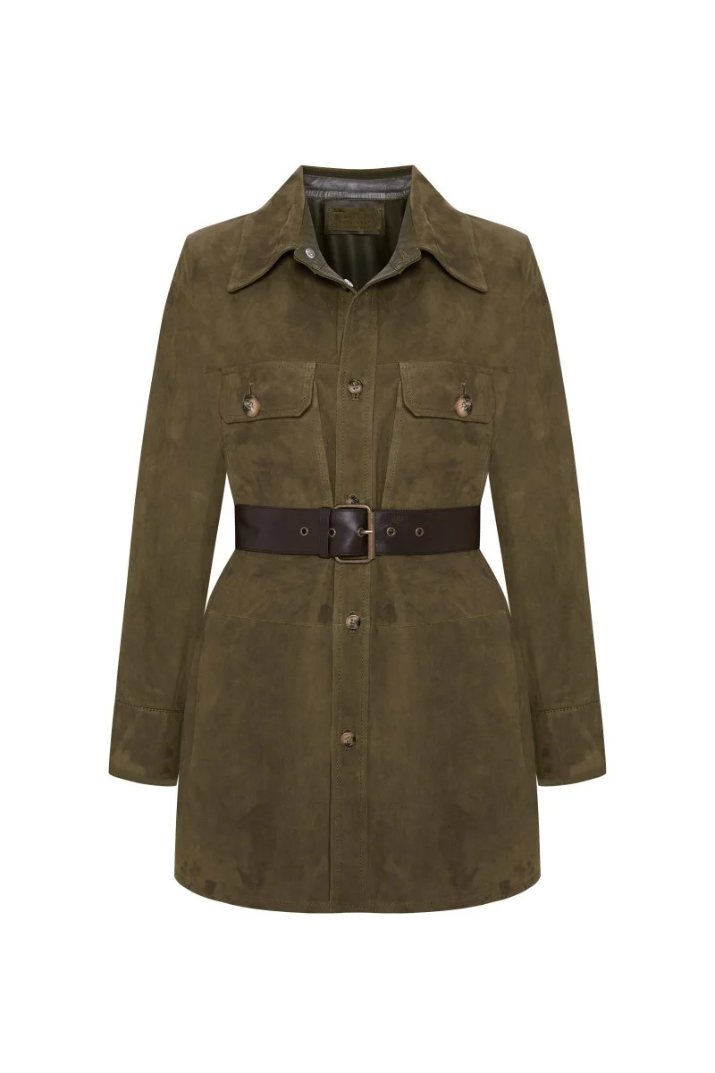 Bigardini Gia Women's Belted Suede Oversize Shirt - Khaki
