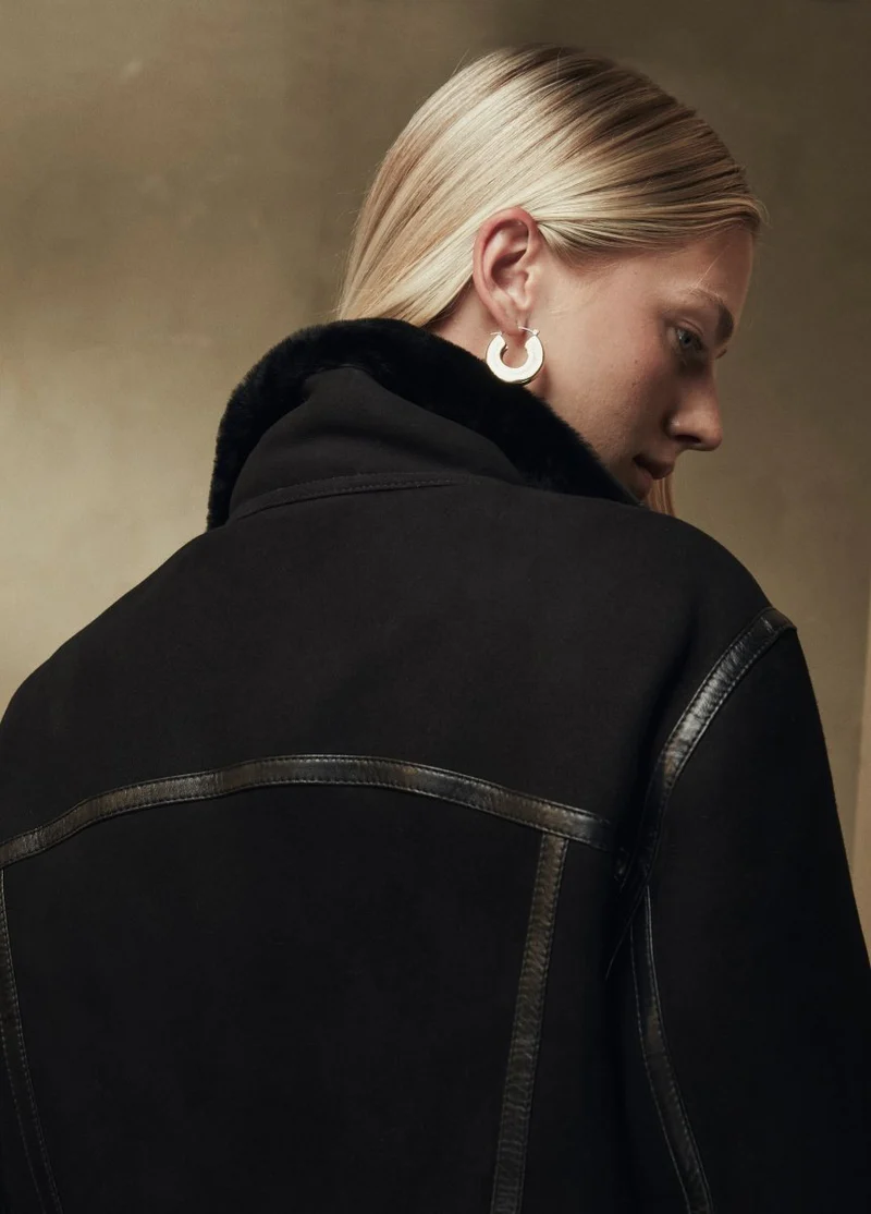 Bigardini Chiara Women's Shearling Sheepskin Oversize Jacket - Black
