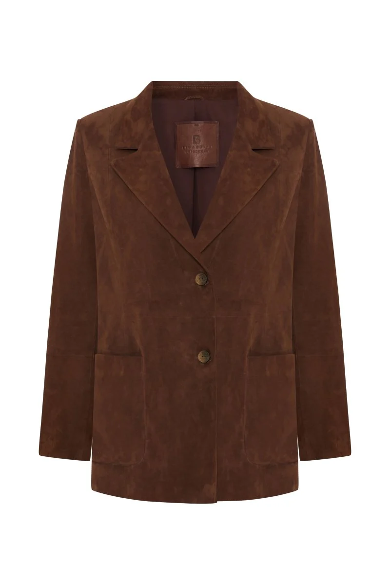 Bigardini Sage Women’s Suede Blazer Jacket - Milk Brown