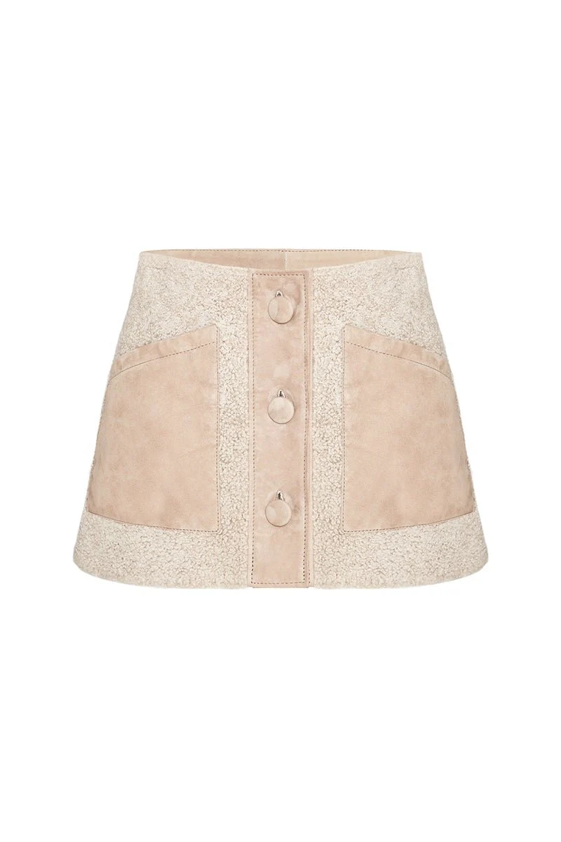 Bigardini Ruby Women's Teddy Curly Shearling Mini Skirt - Beige