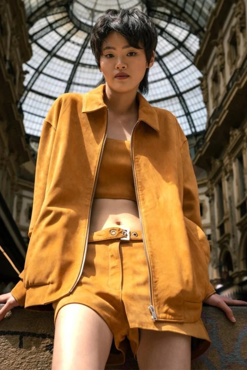 Bigardini Jade Women’s Oversize Nubuck Jacket – Mustard