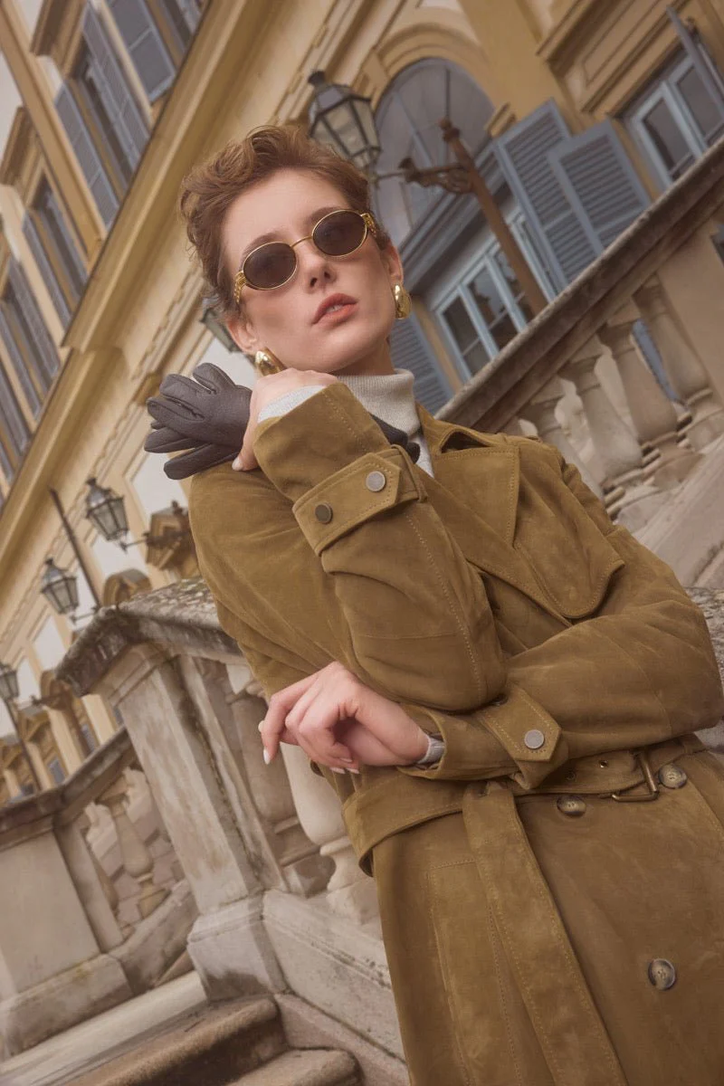 Bigardini Nia Women’s Suede Trench Coat – Khaki
