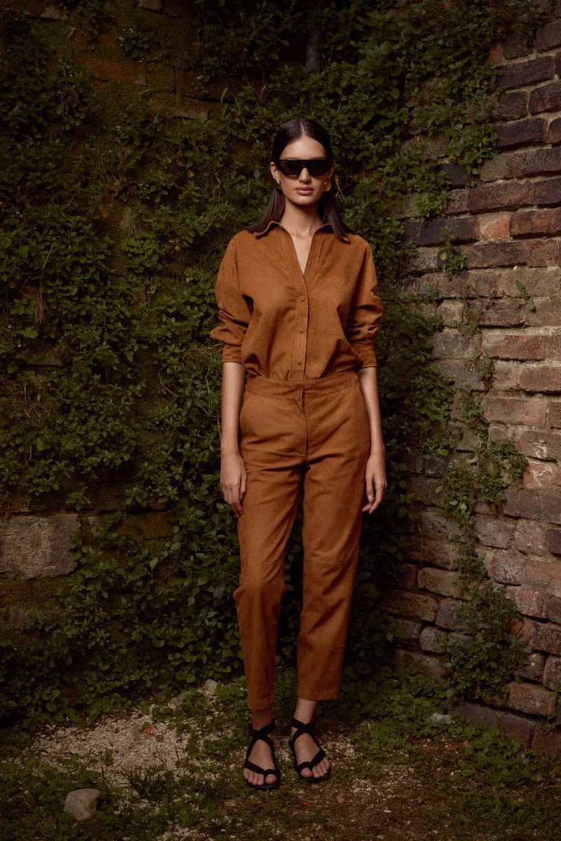 Designed to add an elegant and stylish touch, the women’s suede oversize shirt stands out with its high-quality material and modern design. The luxurious snuff-colored suede leather, with its soft texture and durability, provides a look that is both comfortable and chic.