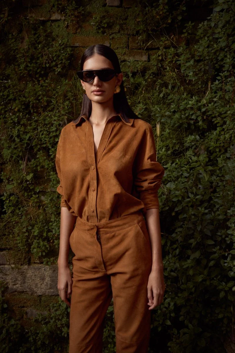 Bigardini Silvia Women’s Oversize Suede Leather Shirt – Snuff