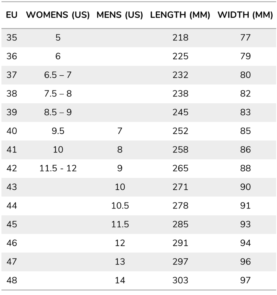 SIZE INFO