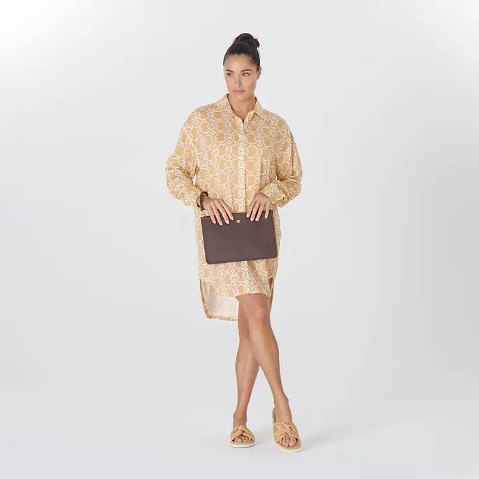 Compact pochette designed to hold your daily essentials, lined with soft canvas for added protection and finished with high-quality Italian hardware for lasting durability. Crafted in Lake Como, Italy from premium canvas and vegan, plant-based leather, it is neat, lightweight, and durable. Designed to be compatible with the Carry Me Fondente bag, it can also be carried solo for a sleek, minimalist look. Perfect for keeping small items secure and organized, whether used inside a tote or taken on its own to the gym, beach, or while traveling. Size: L30 × H20 × W1.5 cm. Show more