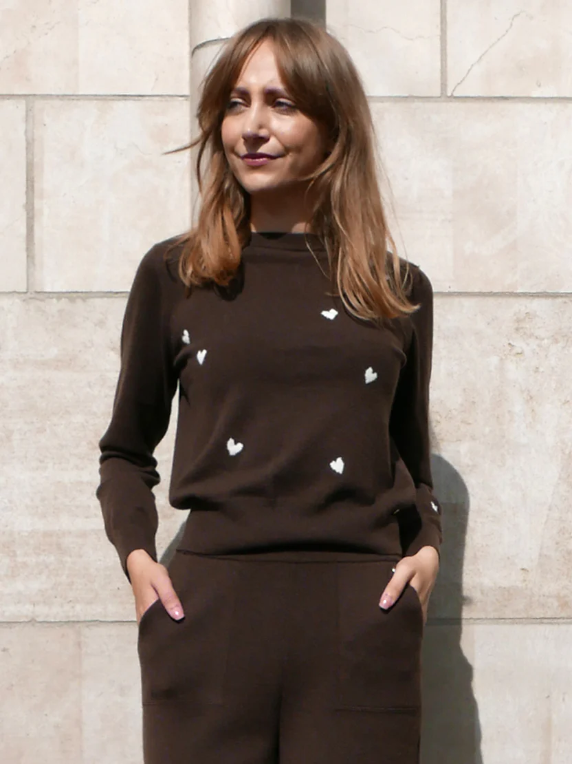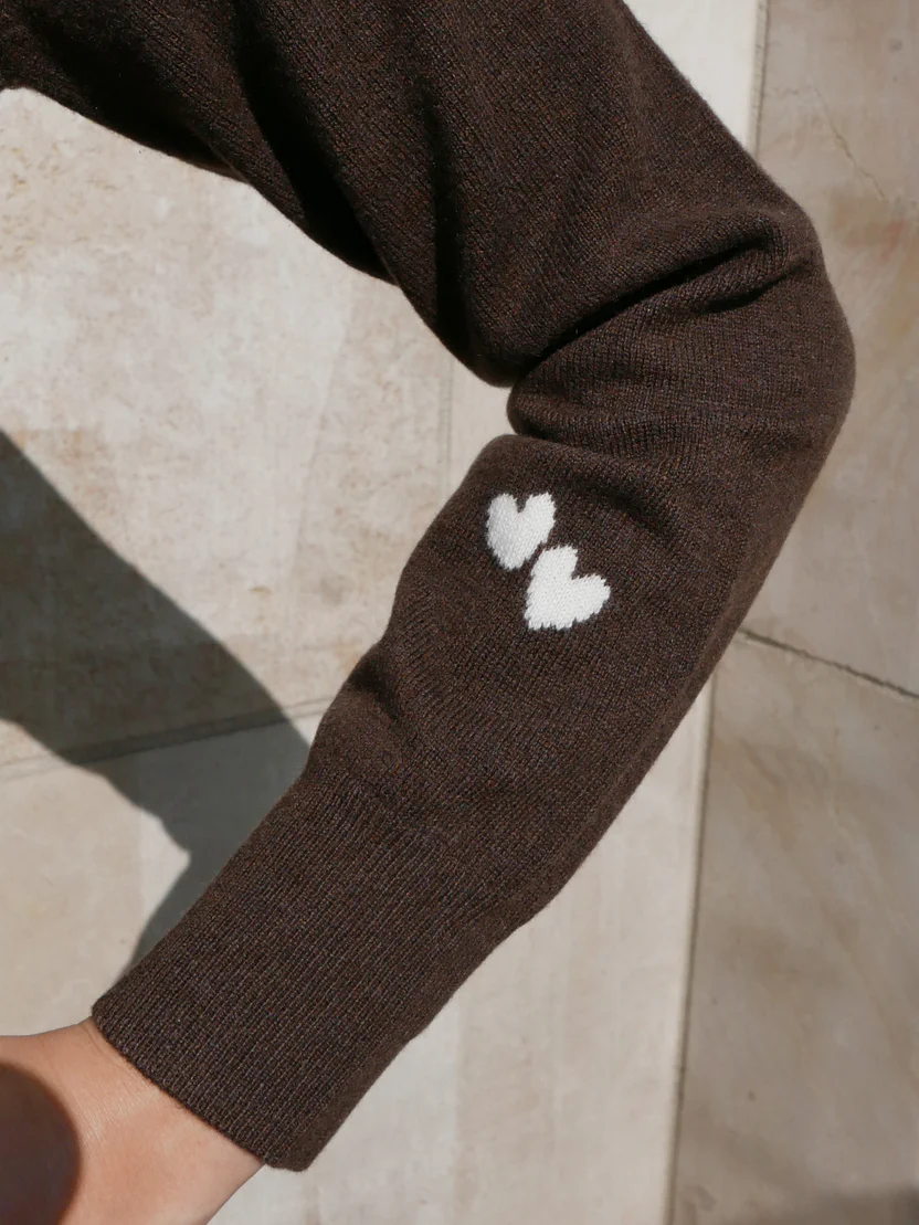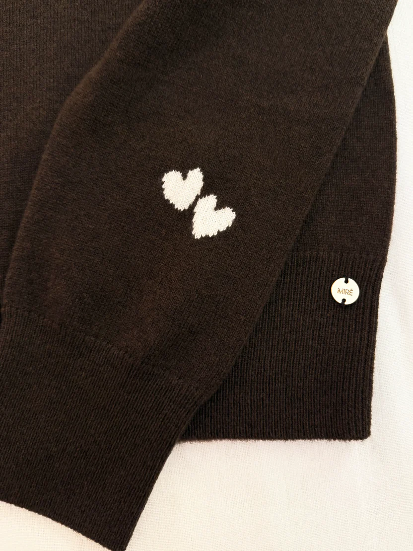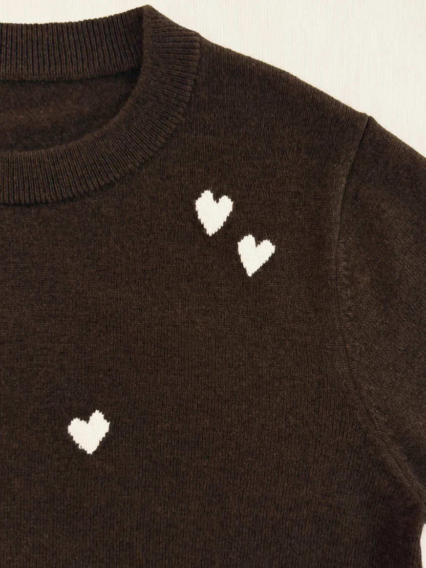 Effortless elegance meets subtle charm. Crafted from the finest 100% cashmere, this round-neck sweater embodies softness, comfort, and enduring style. The refined neutral hue provides a timeless backdrop, while delicate red heart intarsia details add a playful yet sophisticated accent. Designed for everyday wear or elevated styling, it transitions seamlessly from casual denim to tailored looks. Lightweight, breathable, and luxuriously warm, it’s a versatile wardrobe essential that brings both comfort and character to your winter rotation.