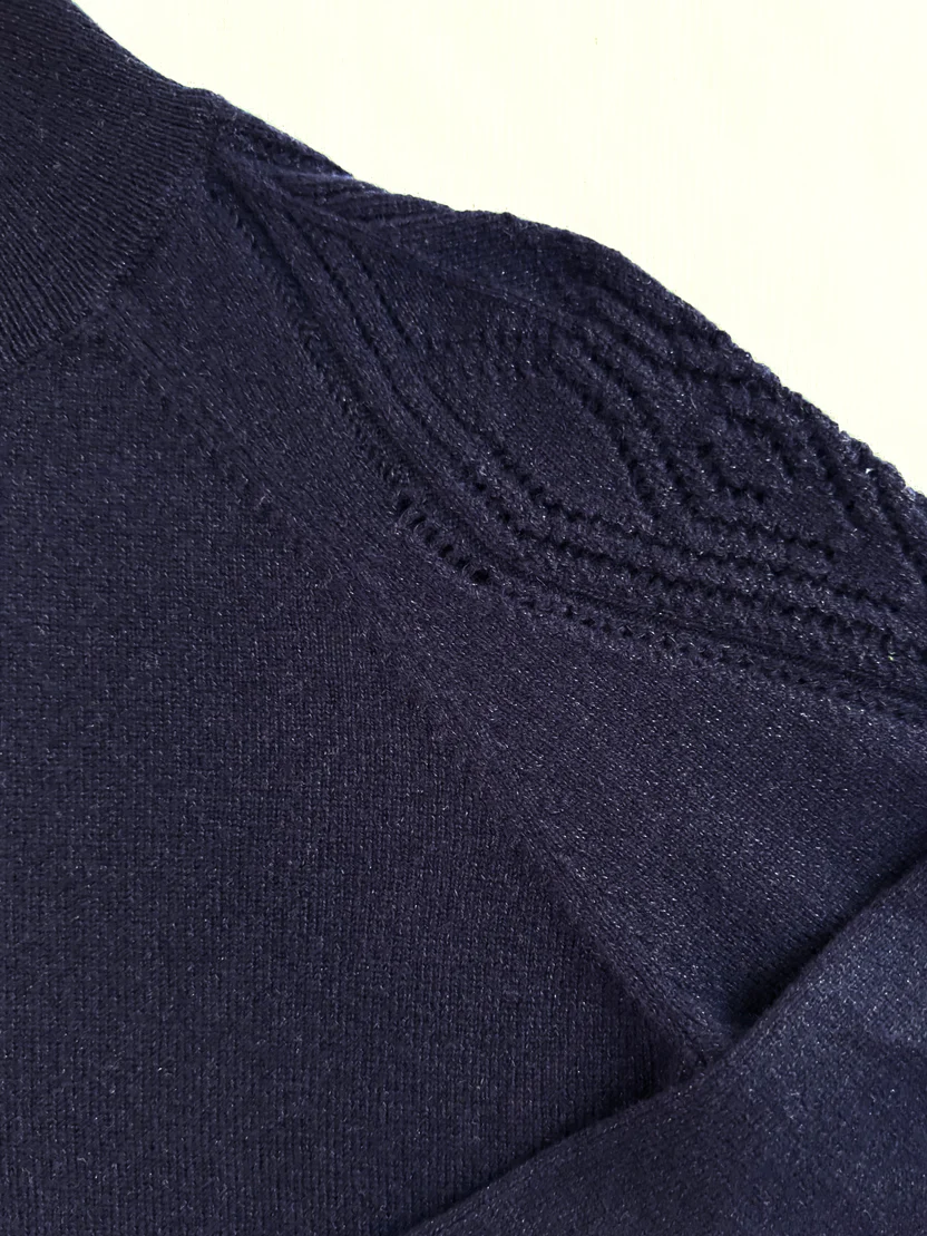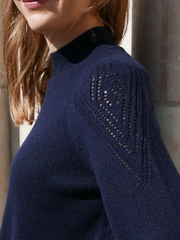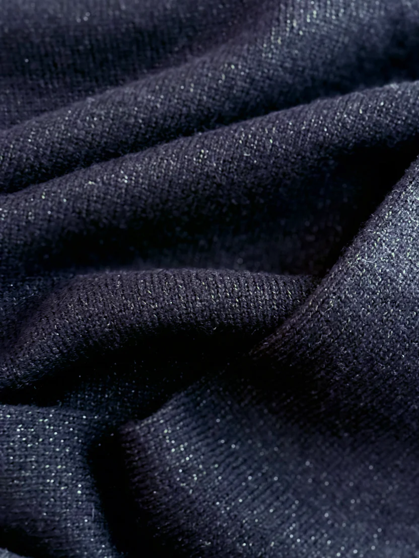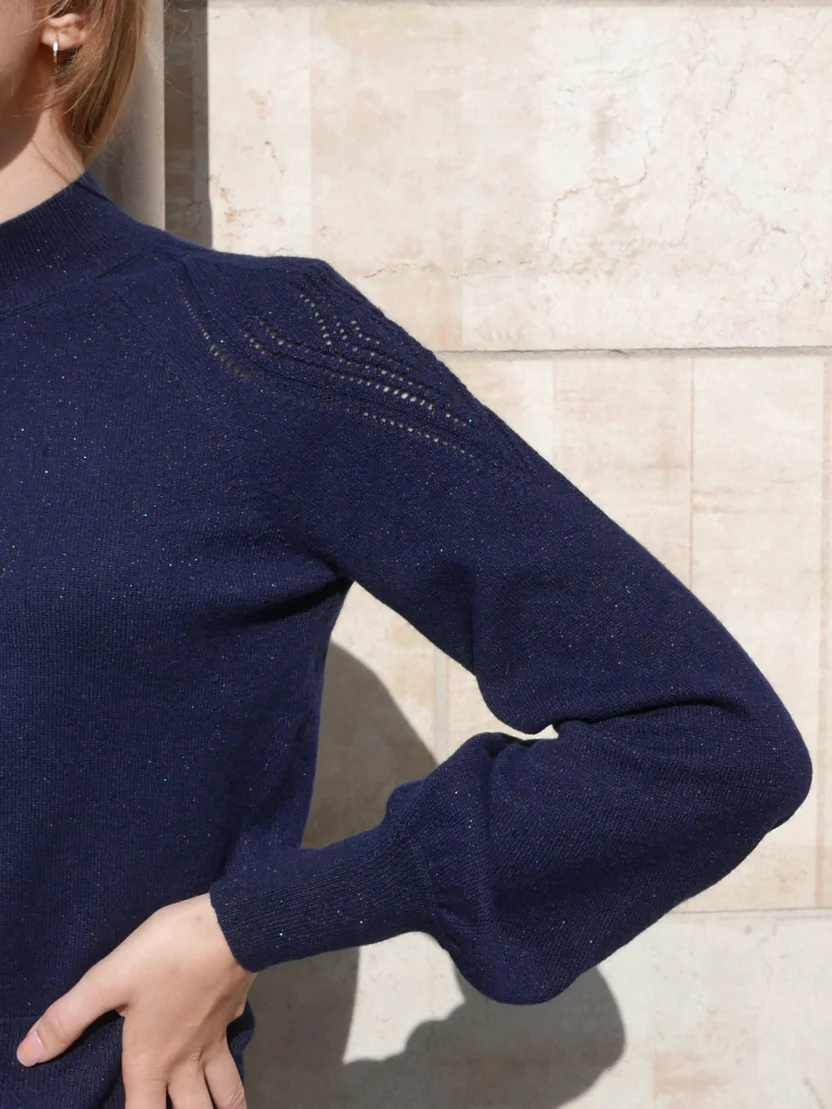 MIRÉ Cashmere Lurex Mock Neck Sweater – Navy with Gunmetal lurex