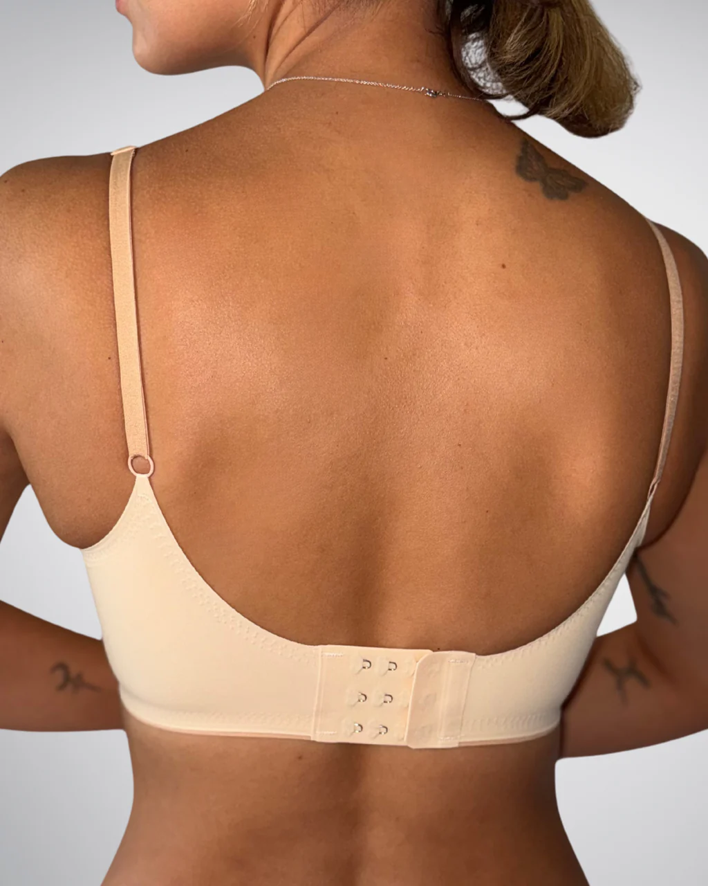 Experience the perfect balance of comfort and support. The Naked Bralette feels like nothing while providing gentle, all-day hold. Its ultra-soft, seamless construction moves with you like a second skin, remaining invisible under clothing. Crafted from a breathable blend of 75% nylon and 25% spandex, it stretches naturally, offers light support, and stays wire-free and bulk-free. Removable pads and convertible straps make it adaptable to your everyday style.