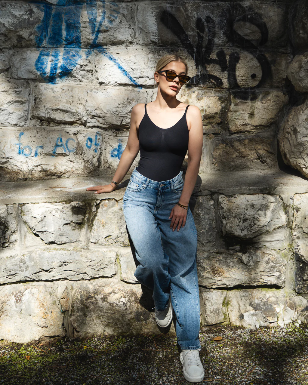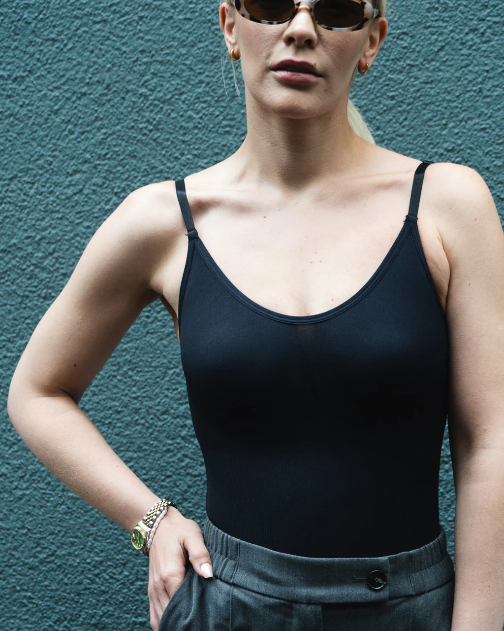Designed with a scoop neckline and front contour stitching, this piece provides subtle bust shaping and gentle support. Adjustable straps ensure a custom fit, while strong compression at the tummy, core, and waist sculpts and smooths your silhouette. The thong back delivers a seamless finish under clothing, and the hook-and-eye closure at the gusset offers three adjustable settings for added convenience. Made from 85% Polyamide and 15% Elastane. Machine wash cold on a gentle cycle. Do not tumble dry. Cool iron if needed. Do not bleach or dry clean. Wash with similar colours. Show more